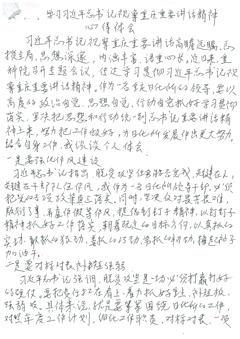 学习习近平总书记视察重庆重要讲话精神心得体会 - 陈岩冰