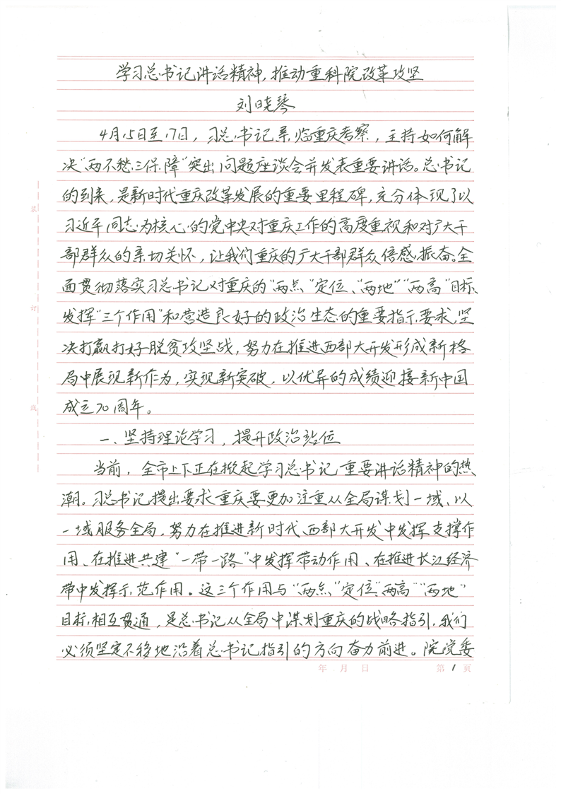 学习习近平总书记重要讲话精神,有助于重科院改革攻坚 - 刘晓琴