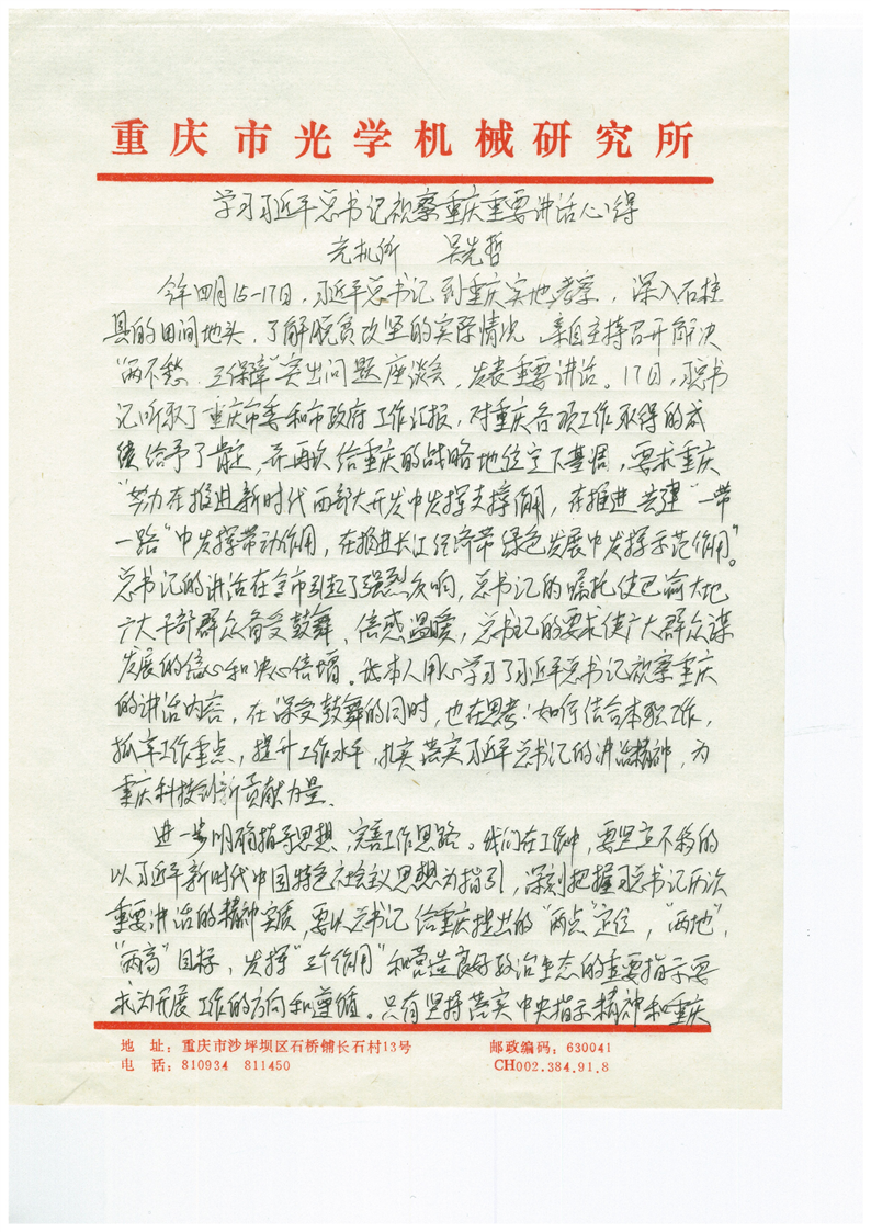 学习习近平总书记视察重庆重要讲话心得 - 吴先哲