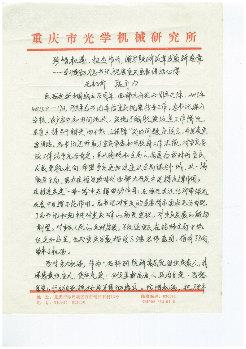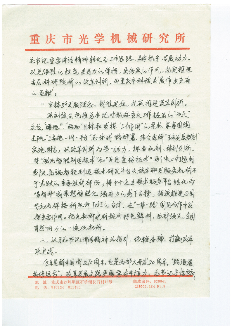 珍惜机遇,担当作为,谱写院所改革开展新篇章 - 段自力