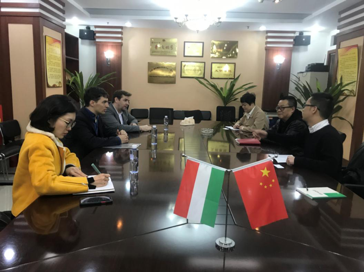 11月19日下午,为持续推进匈牙利与重庆的国技创新合作,有助于中国-匈牙利技术转移中心(重庆)高质量开展,匈牙利驻重庆总领事馆副馆长葛凯达率新到任商务领事万里一行到访凯发k8官网高创中心,高创中心主任杨建华会见来宾,中匈技术转移中心负责人、高创中心主任助理李海及相关人员参加会谈。