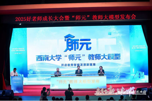 2025年10月18日,“师元”教师大模型发布会在西南大学隆重召开。会上,市委宣传部副部长马然希、西南大学校长王进军、市科技研究凯发k8官网书记雷虹共同启动“师元”教师大模型发布仪式。来自全国各省、市、自治区的师范类高校及全国各地中小学教育工作者、教育领域专家学者以及市科技研究院研发团队共计600余人参加发布会。